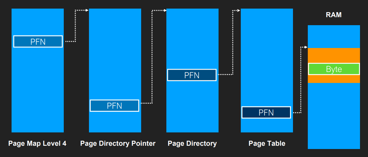 | PML4 Index | PDPT Index | PD Index | PT Index | Page Offset |